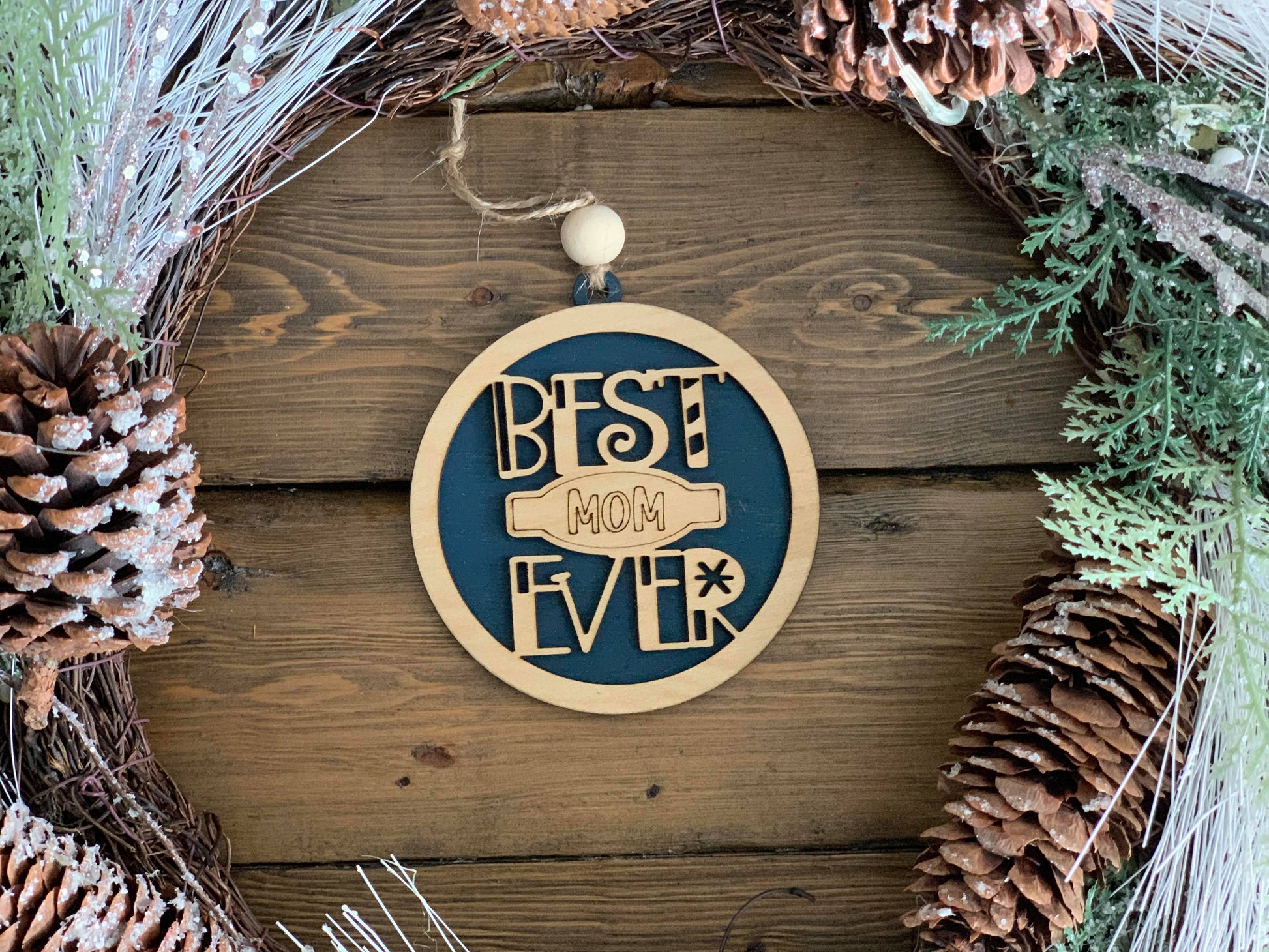 BEST EVER Ornament SVG File Laser Ready MOM PAPA TEACHER MIMI DAD COACH and more