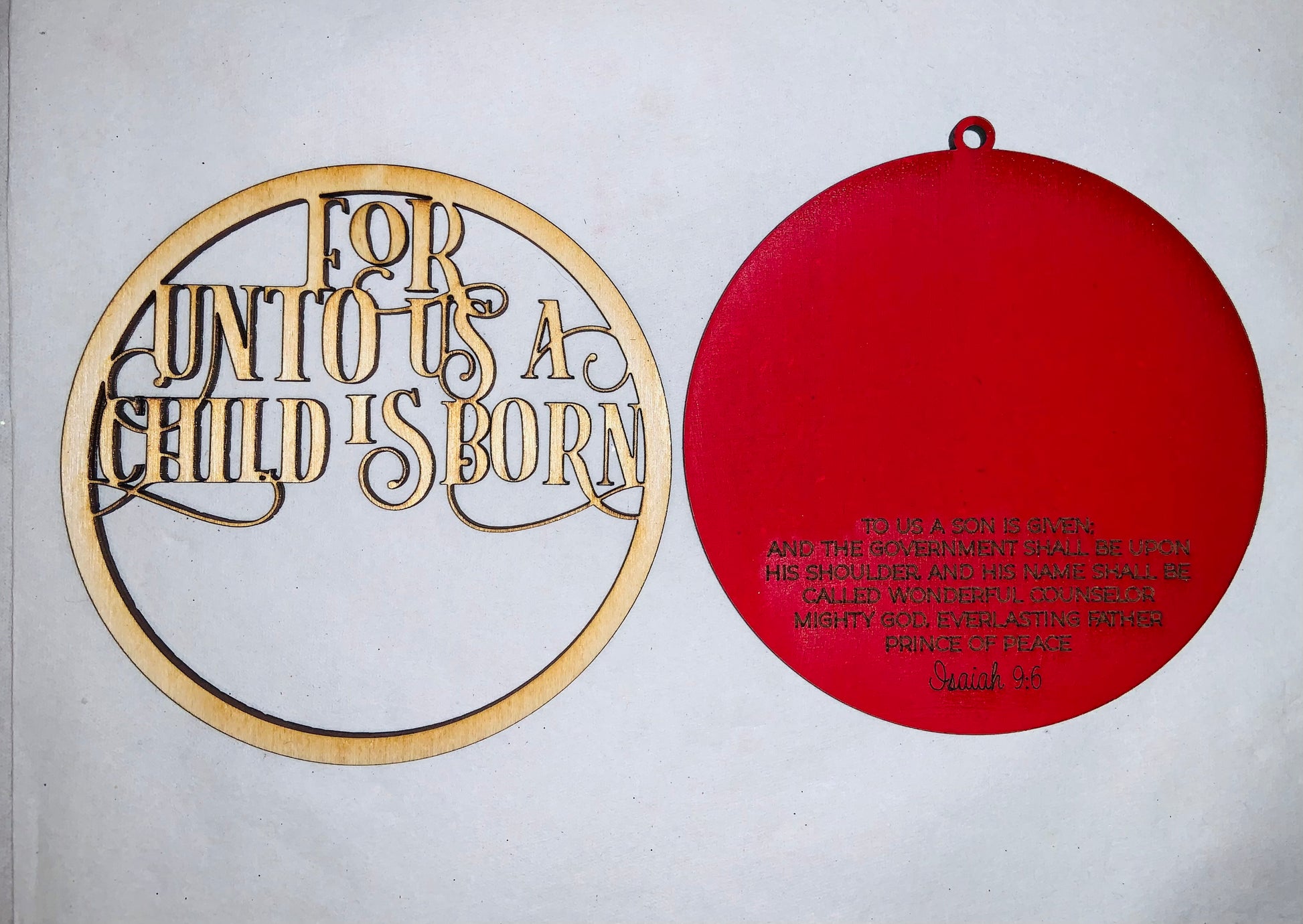 Christmas Ornament: For Unto Us a Child is Born SVG File Glowforge Ready Laser
