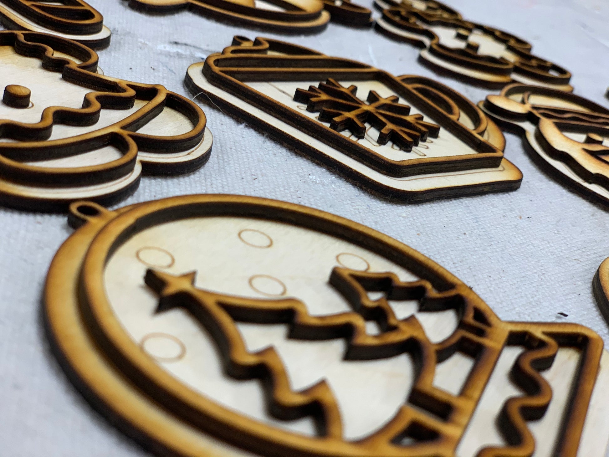 Made from 1/8" birch, this kit comes with 10 ornaments. There is two layers to each ornament. Paint each piece separately then glue together for a festive finished look!