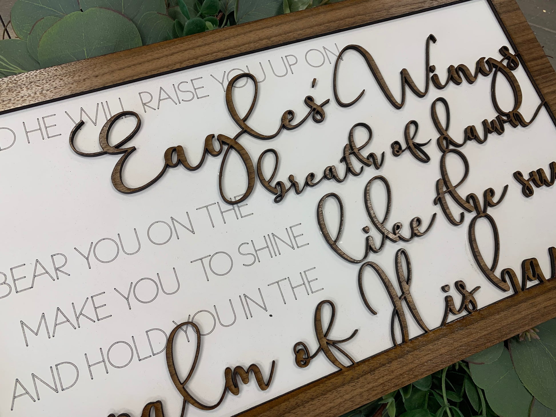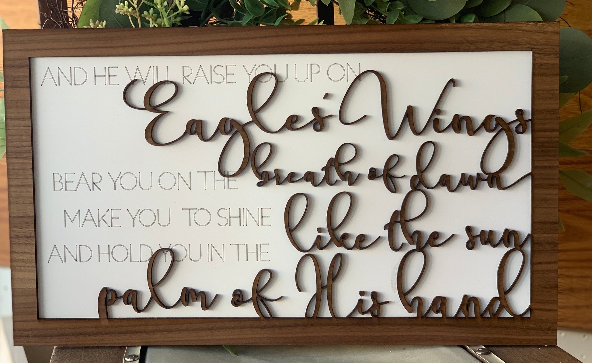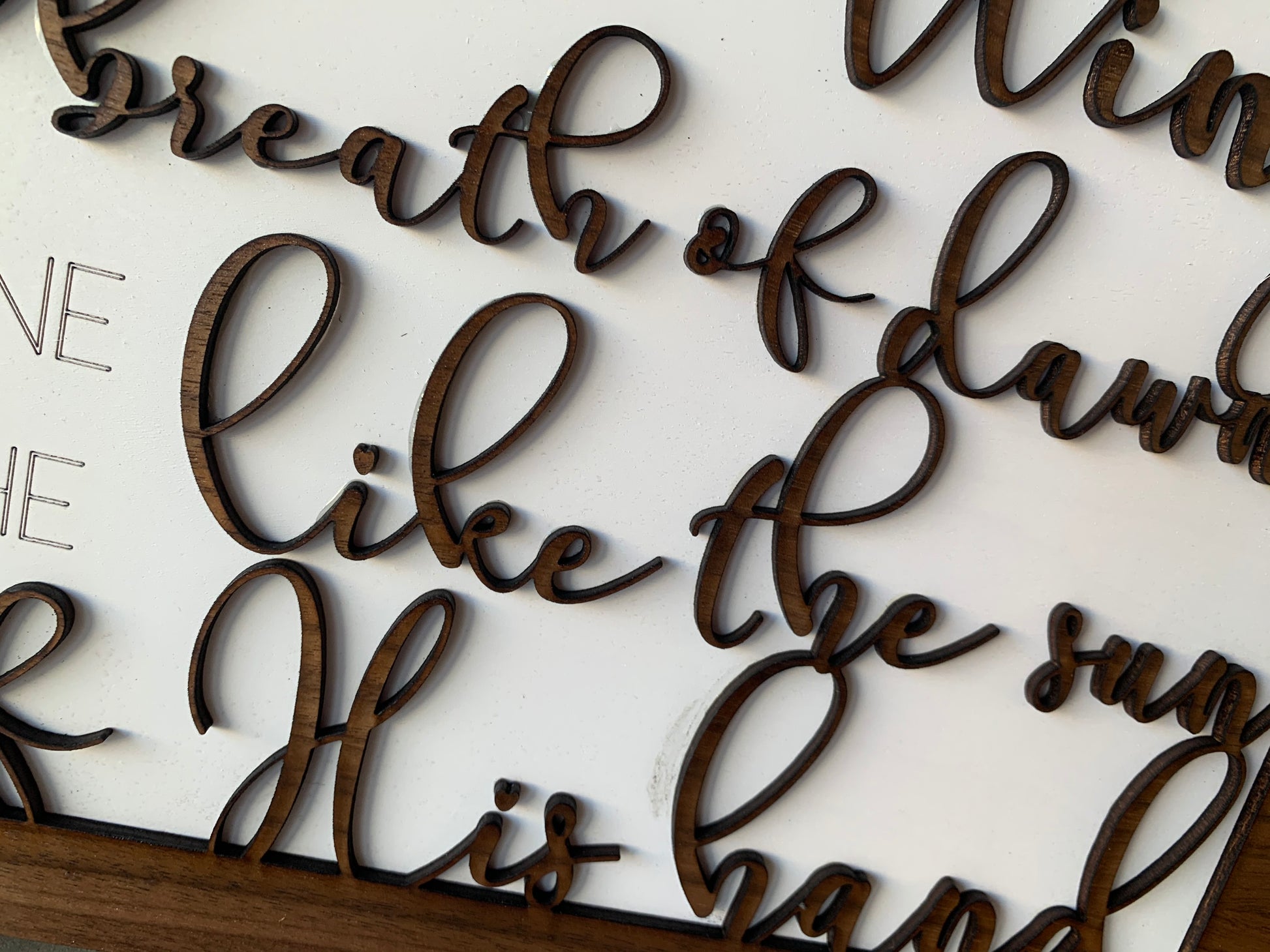 18 x 10, this layered sign is a beautiful combination of walnut and painted maple.