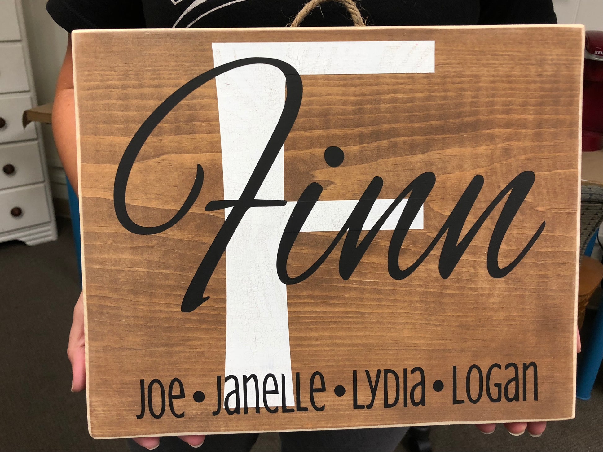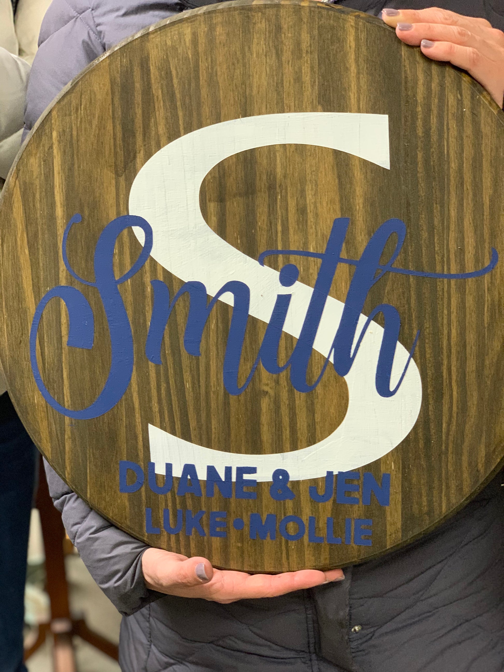Most of these signs are made in a horizontal orientation in the 16 x 12 size and also work nicely on the 15" or 18" rounds. They are also a popular design for our Farmhouse Trays and Clocks.