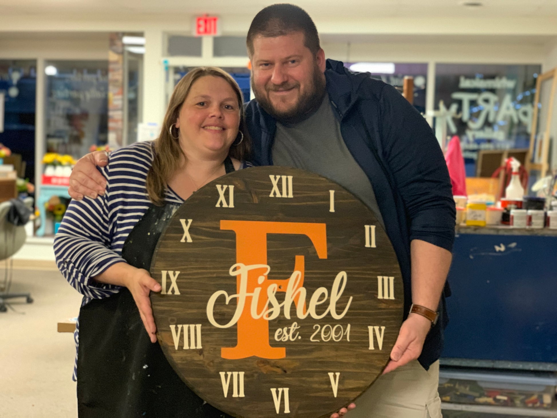 Our solid wood Farmhouse Clocks are now available in a smaller size! This version measures 18" in diameter and can be customized! They would make a great addition to a gallery wall and are the perfect size!