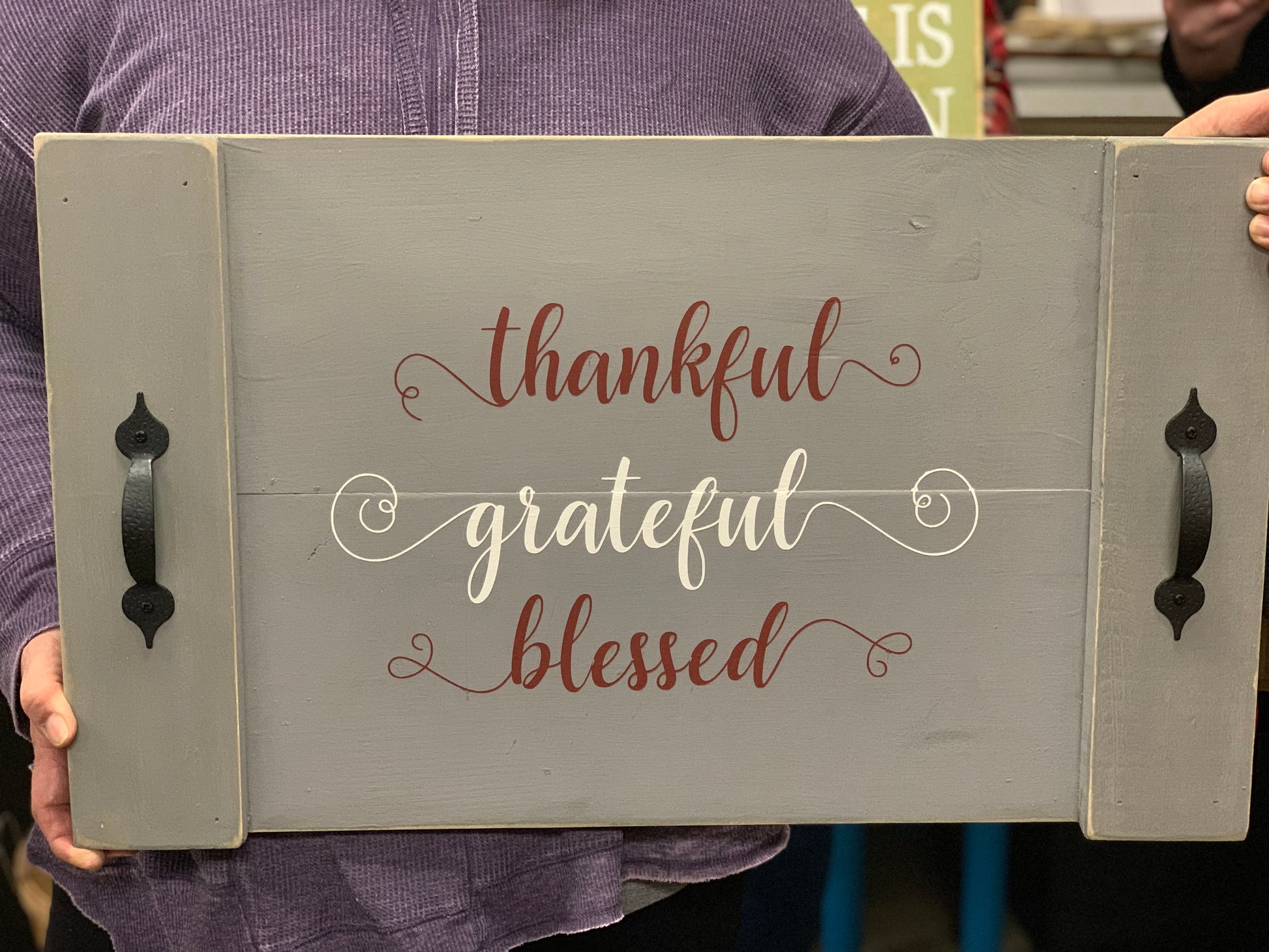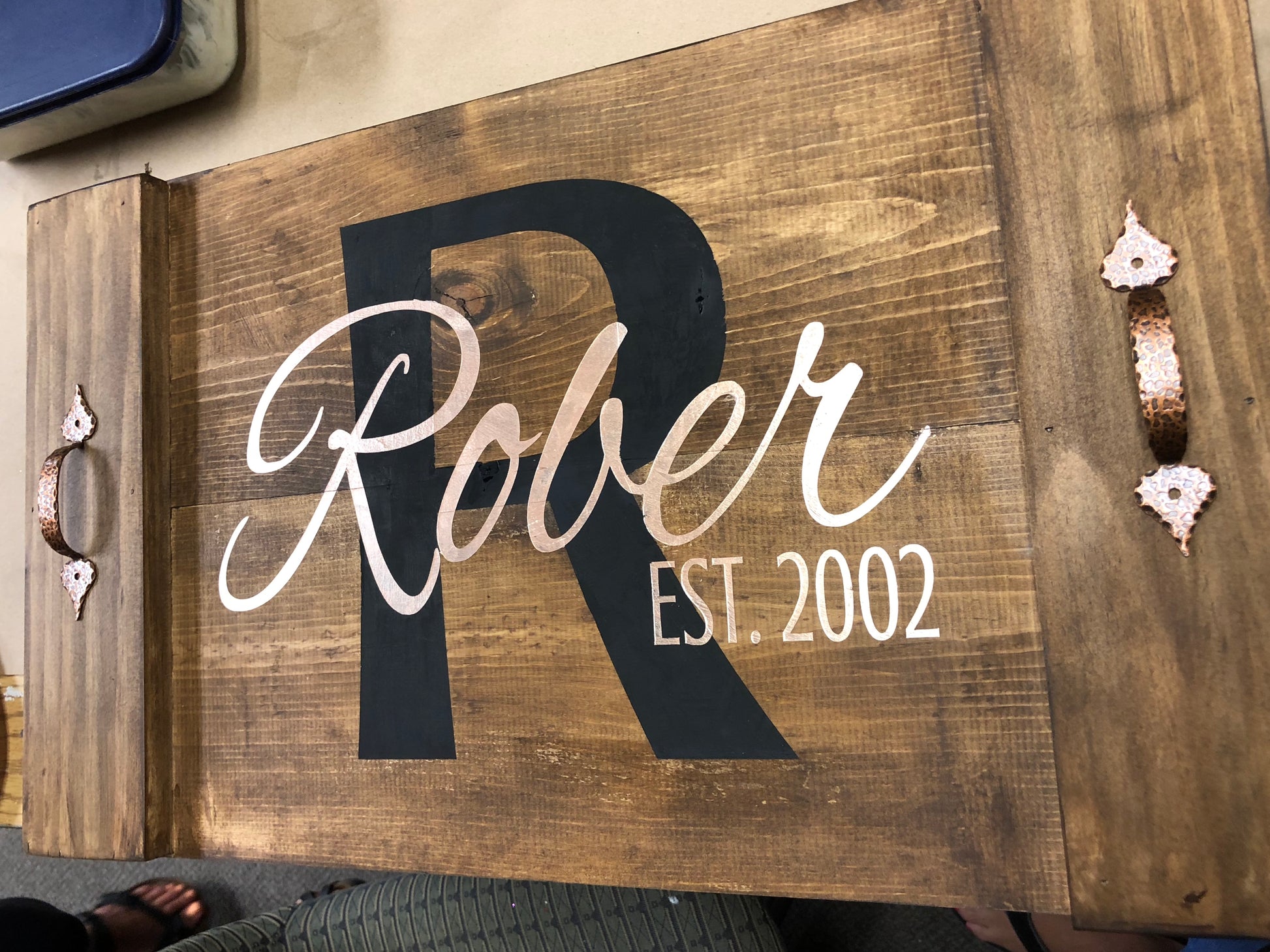 Hello! Our heavy duty, hand built tray can be customized with many of our popular designs or personalized with our family name designs. It's up to you!