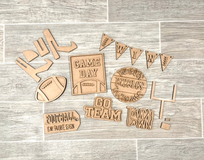 This seven piece unfinished kit is made up of 1/8" maple. pieces vary in size, but are all designed to accent a tiered tray.