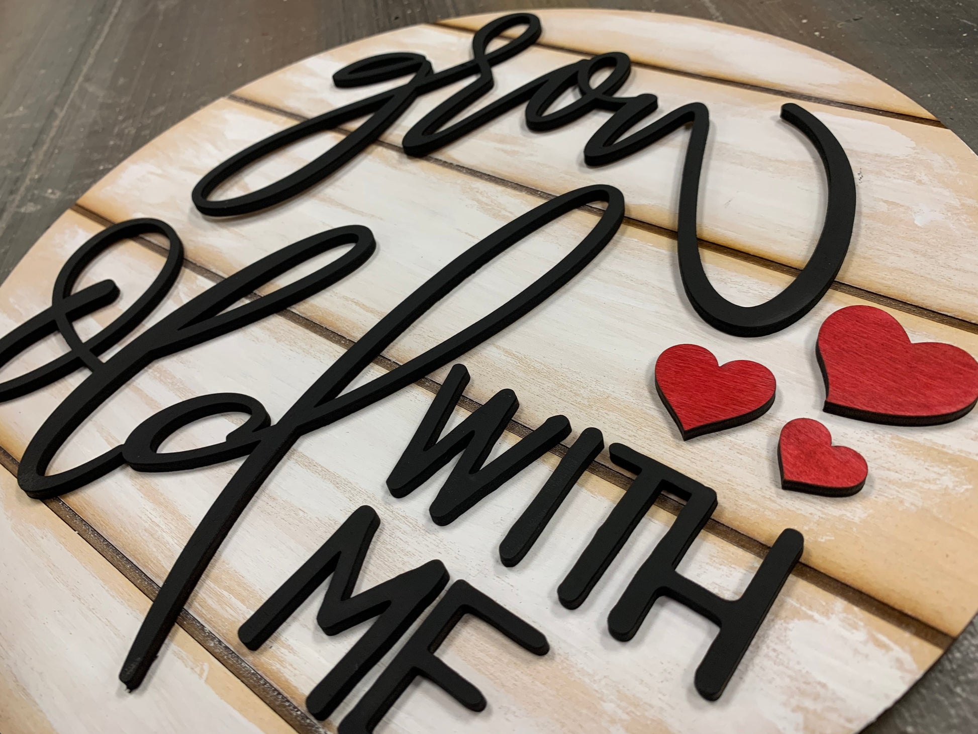 Create your own special little Valentine! This DIY Kit comes with a 15" Shiplap Round and the words Grow Old With Me and three hearts. The words and hearts are cut from 1/8" maple. The Shiplap round is made from 1/4" birch.