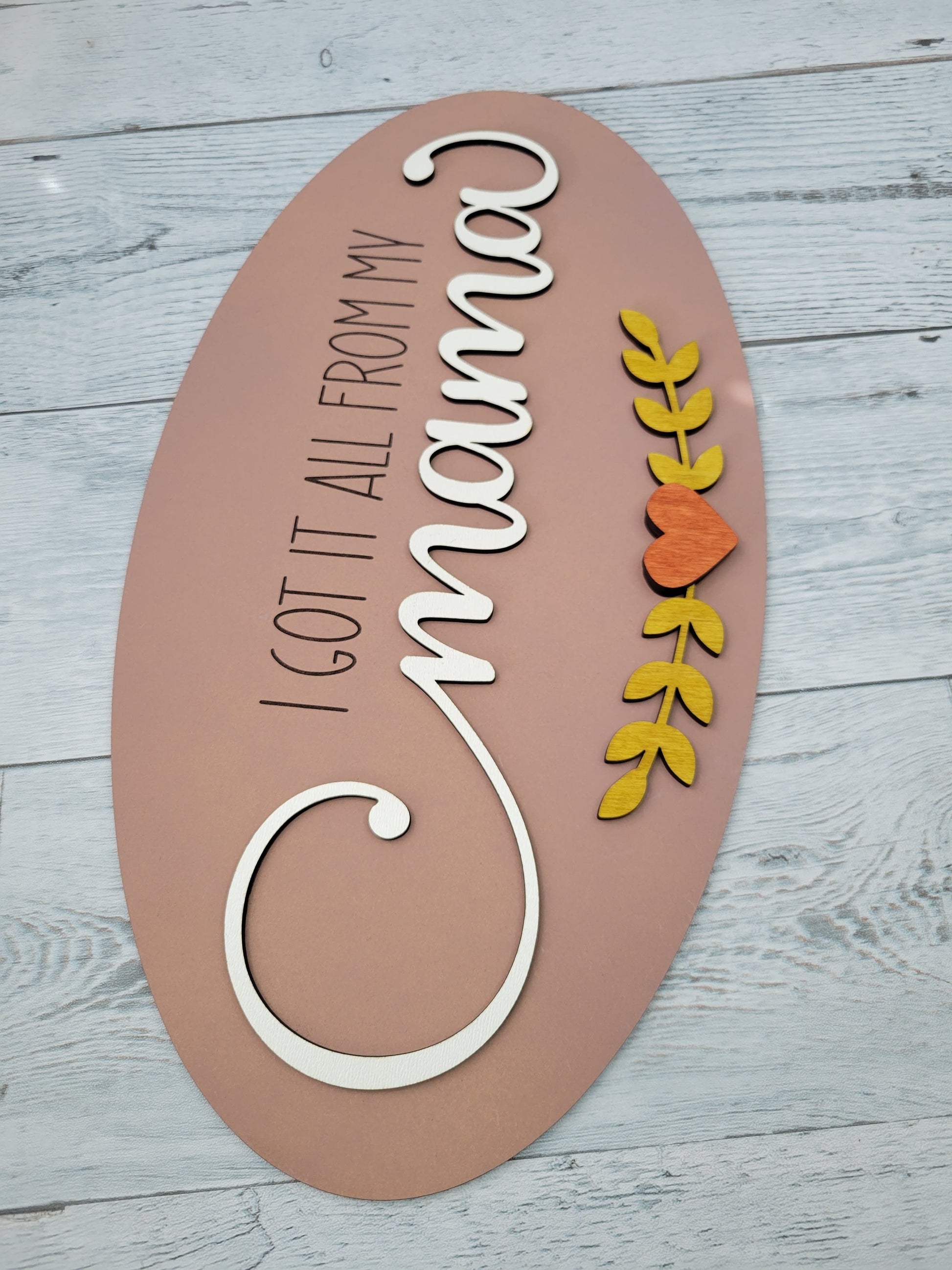 I got it all from my Mama SVG Laser Ready File OVAL shape layered words flowers