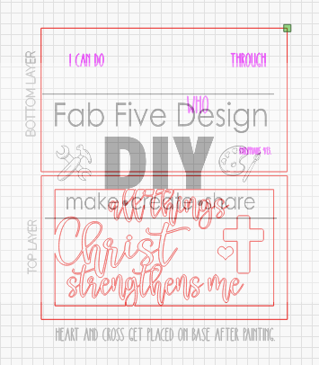 Ungrouped for easy cutting. Top layer can be cut from a variety of woods and layered over the engraved or scored bottom. Vinyl stencils could be cut from either as well.