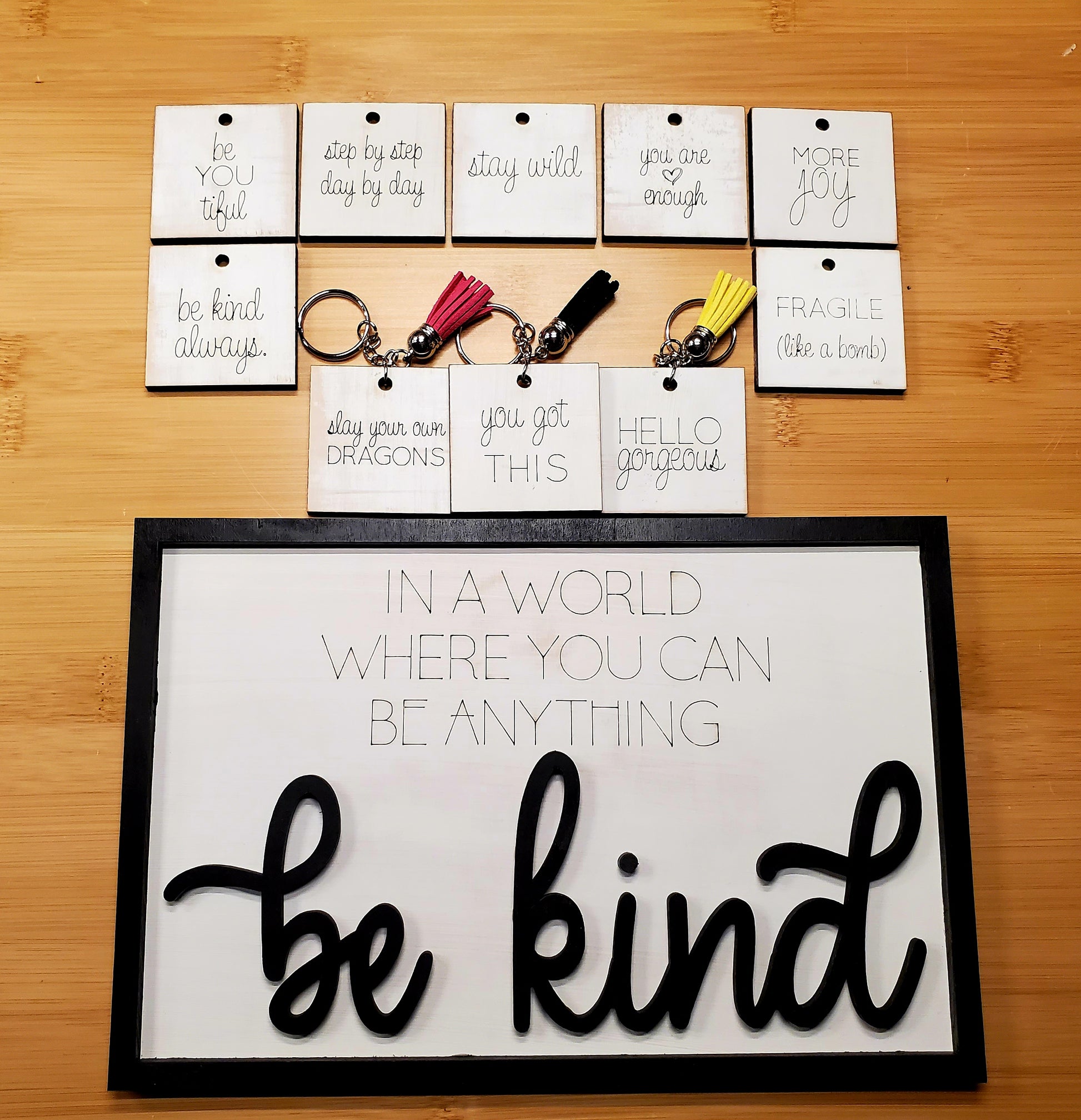 Layered Sign and Keychains: Be Kind SVG File Laser Ready Glowforge