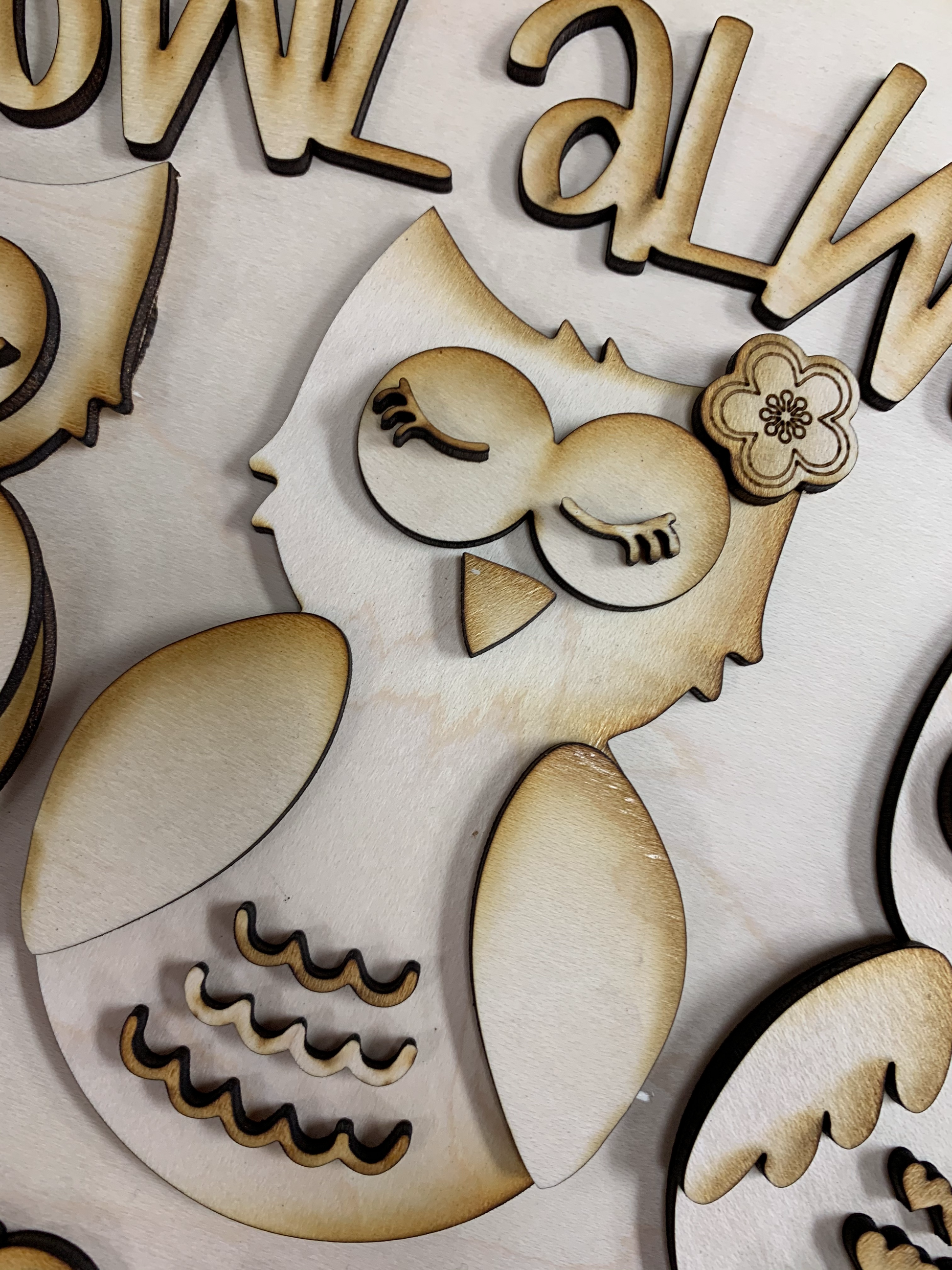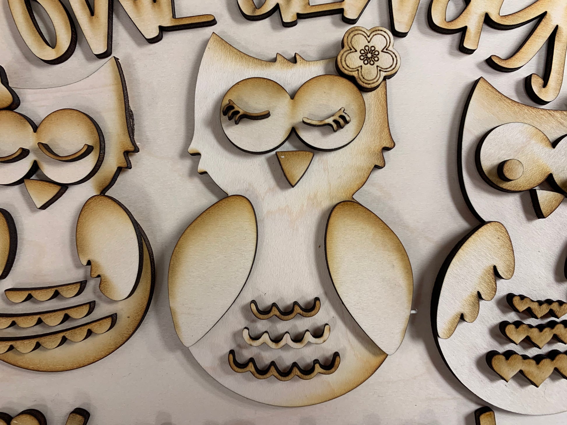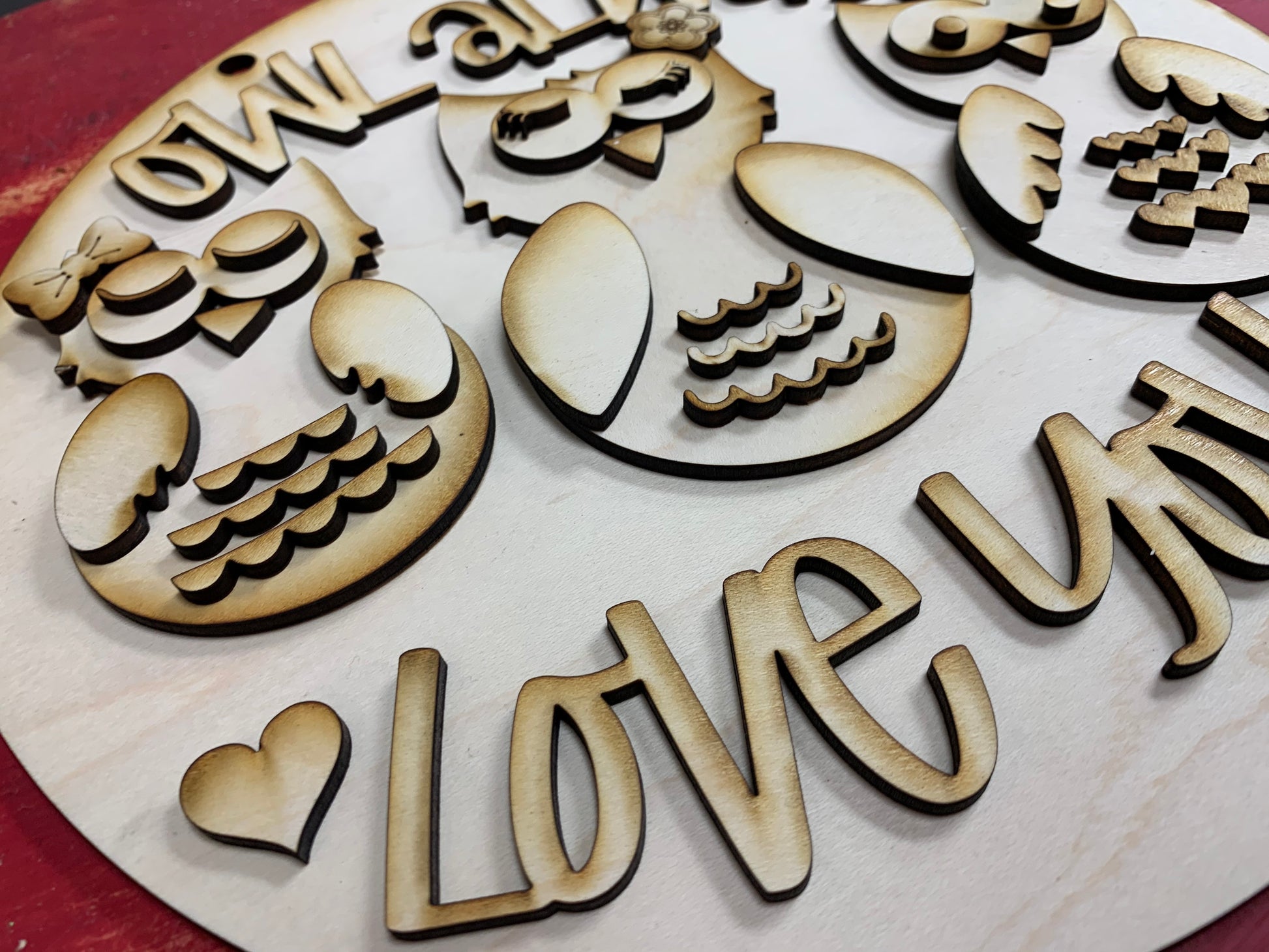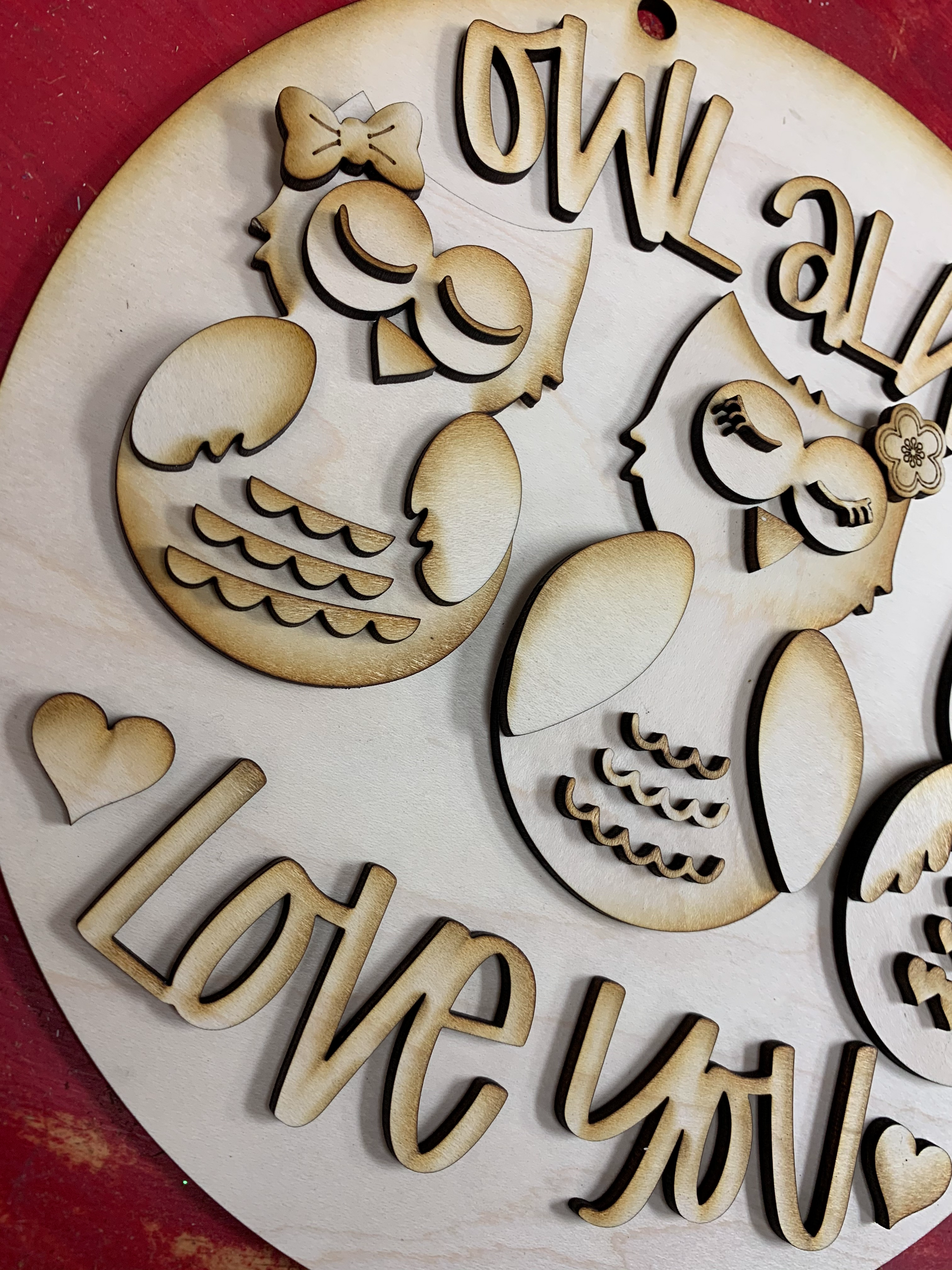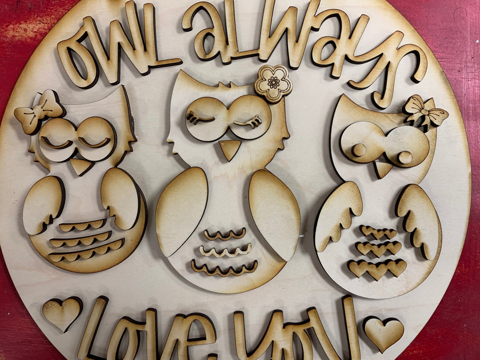 Owl Always Love You! Have some fun and celebrate Valentine's Day with this cute, crafty sign. Cut from 1/8" Maple, this 9.5" sign has double layers to create a detailed 3D effect. All you need is some paint and glue and you will be able to make this a unique piece of holiday decor!