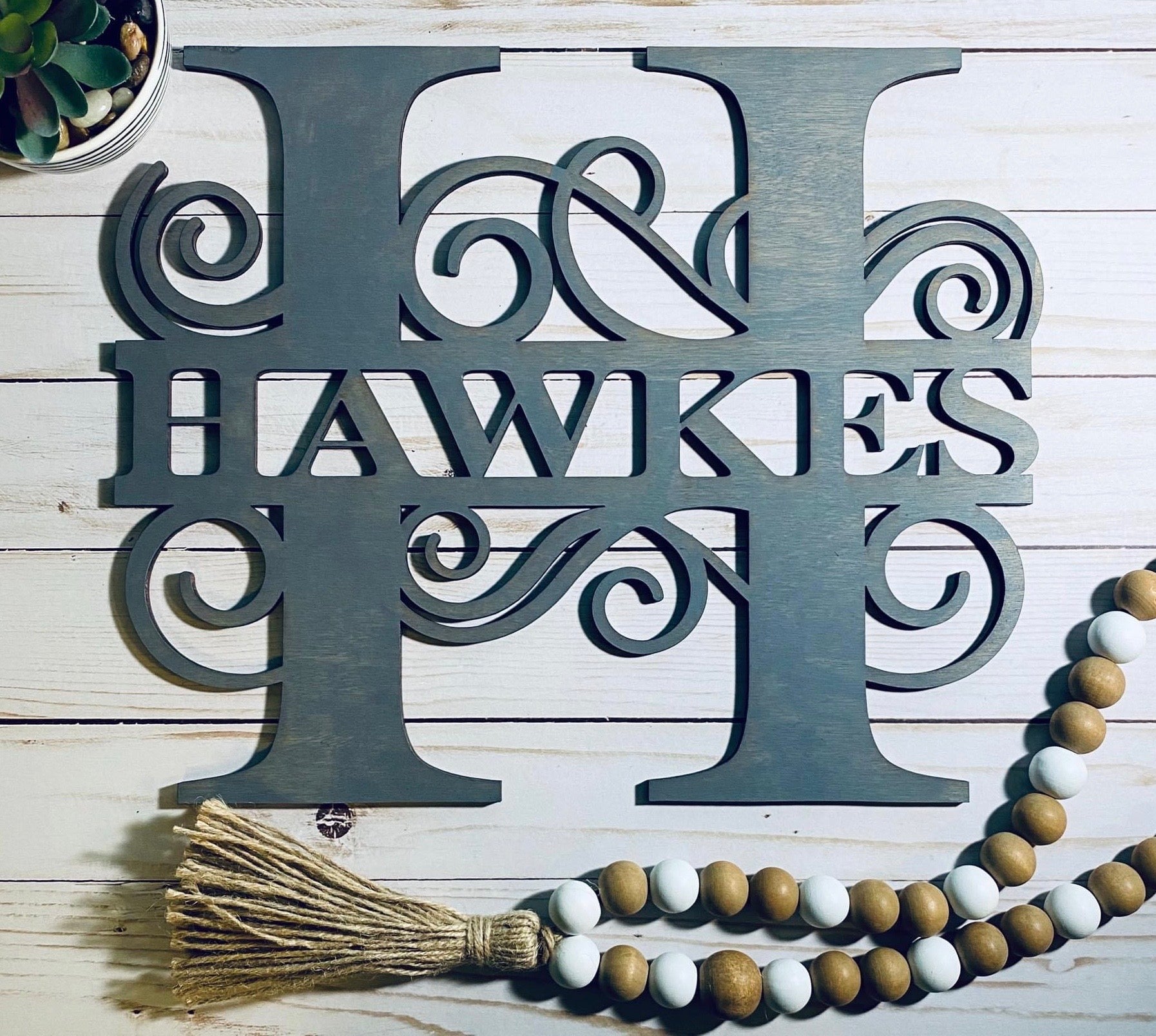 Beautiful solid wood monogram--perfect for a wedding gift, bridal shower, grandparents or more! Can be painted or stained. Made from 1/4" Maple. Timeless scroll design. Measures approximately 12" x 12" Please provide customization details (letter choice, name and paint/stain choice upon checkout.