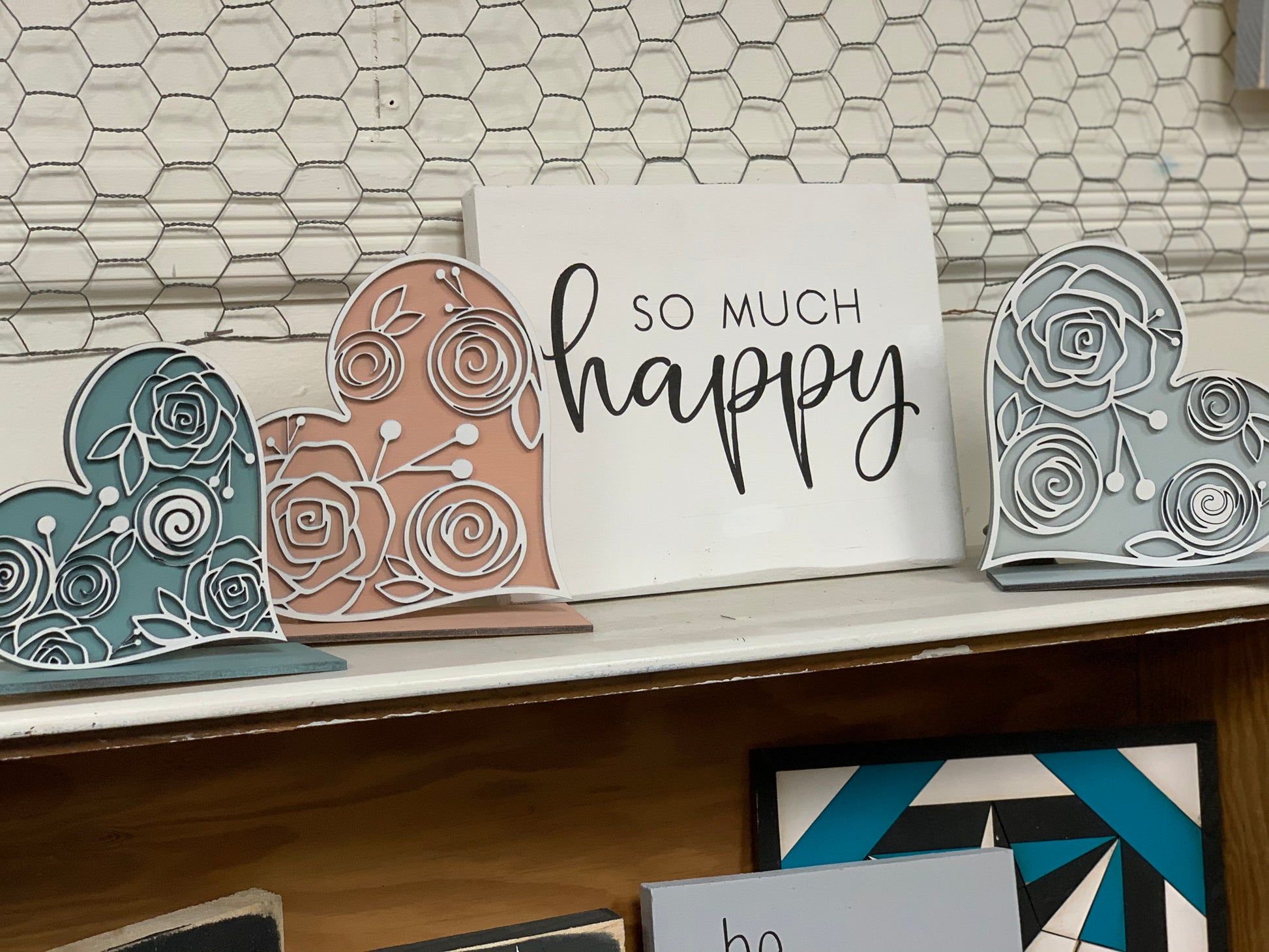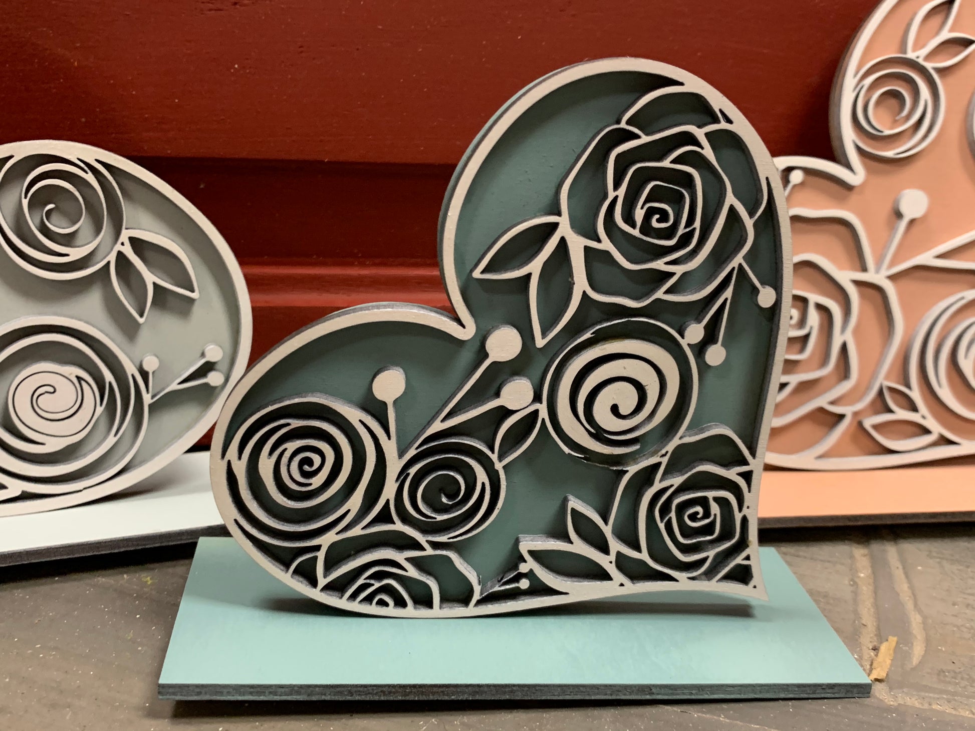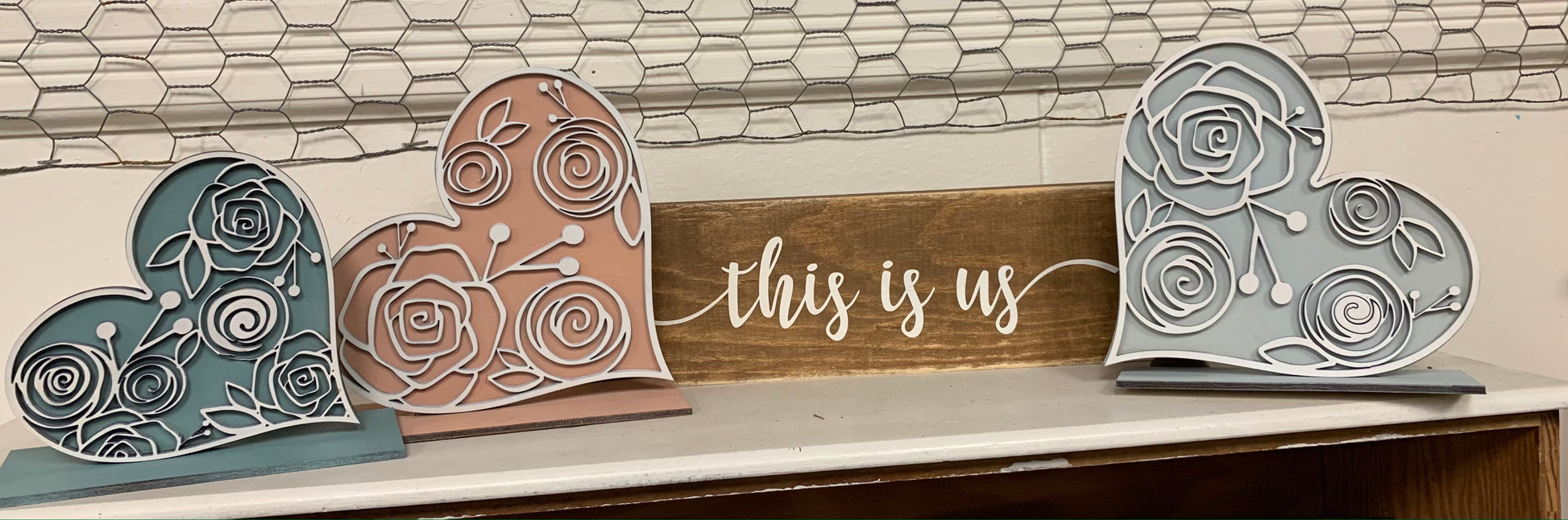 The set of three painted hearts is just $25. You can order an unfinished set for $20.