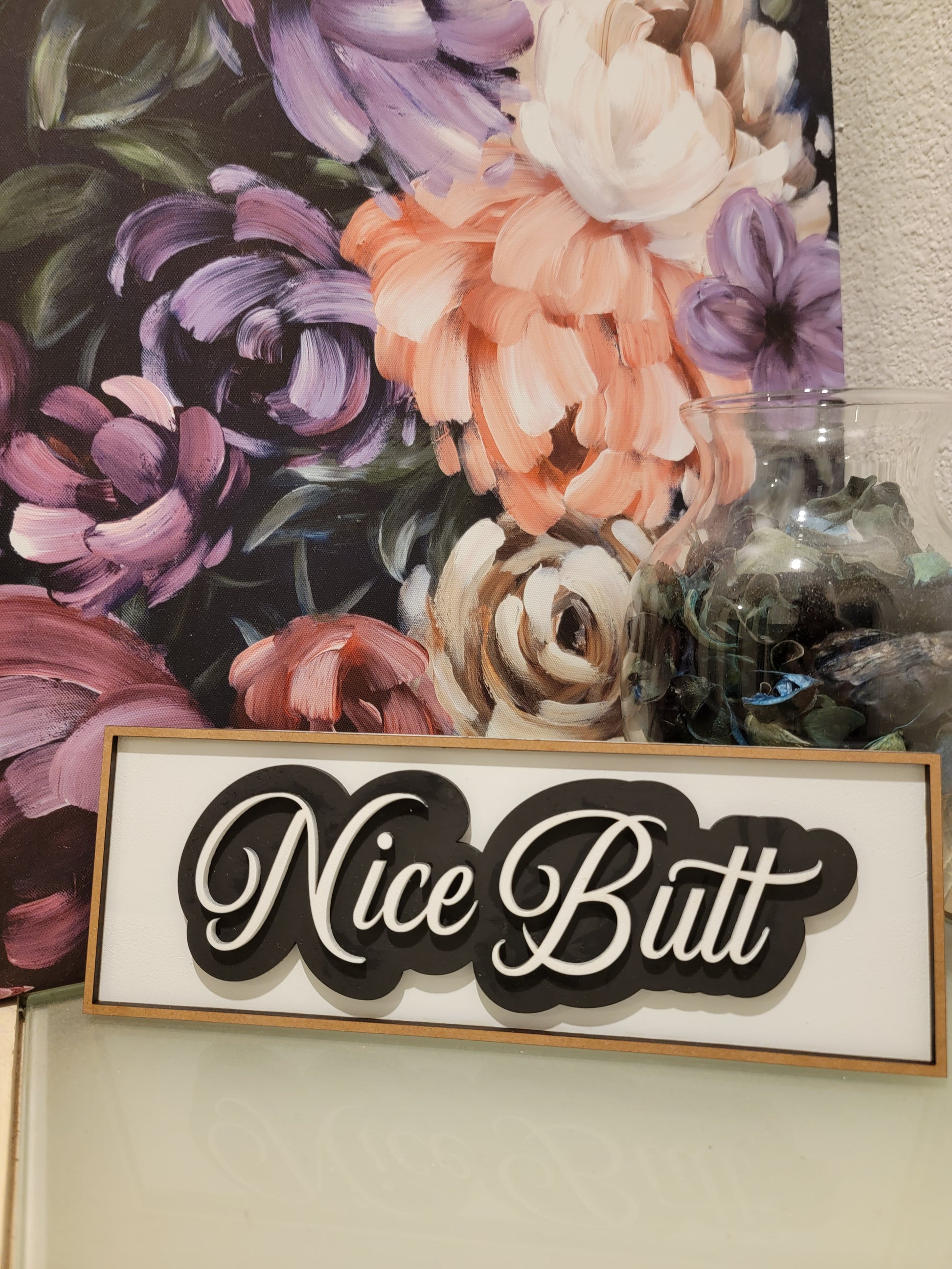 This 18.5" x 6.5" sign is made from ⅛” Purebond Maple Plywood from Home Depot. It is cut at 145/full power on my Glowforge Pro. There’s a bottom layer, a frame, an offset layer and then font. Great font to cut, simple and easy to assemble. I stained the frame with BEHR waterbased Walnut stain. I painted the back white, the offset black and the letters white.