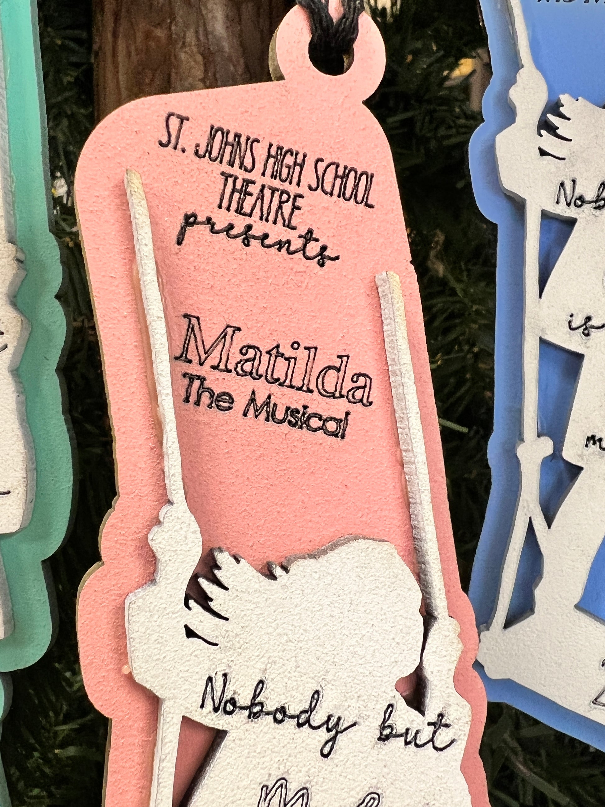 As part of an ongoing fundraising effort for the St. Johns Theatre program, I have designed ornaments from past shows! 25% of the profits from the sale of these ornaments will do directly to the program! More shows coming soon!