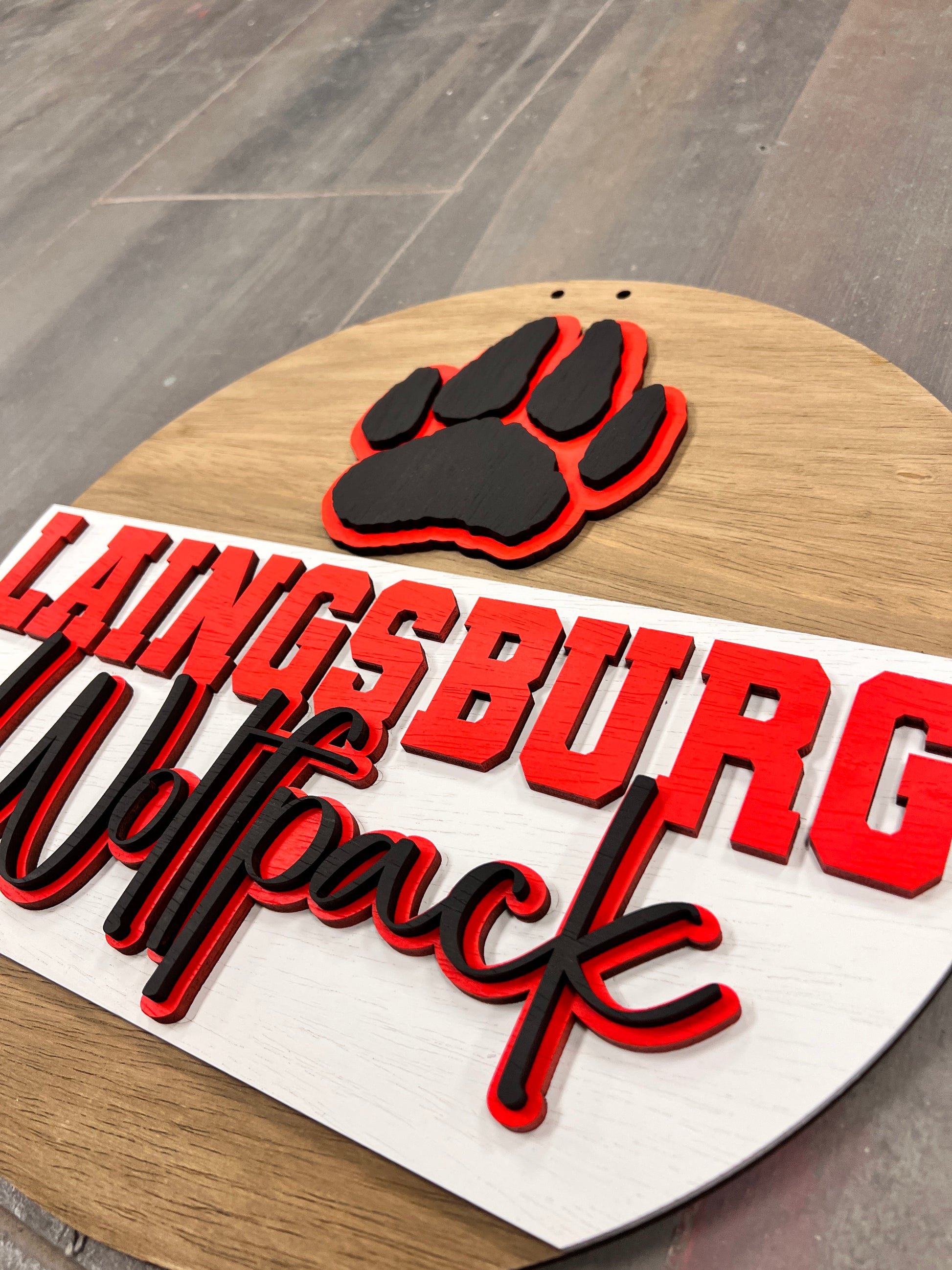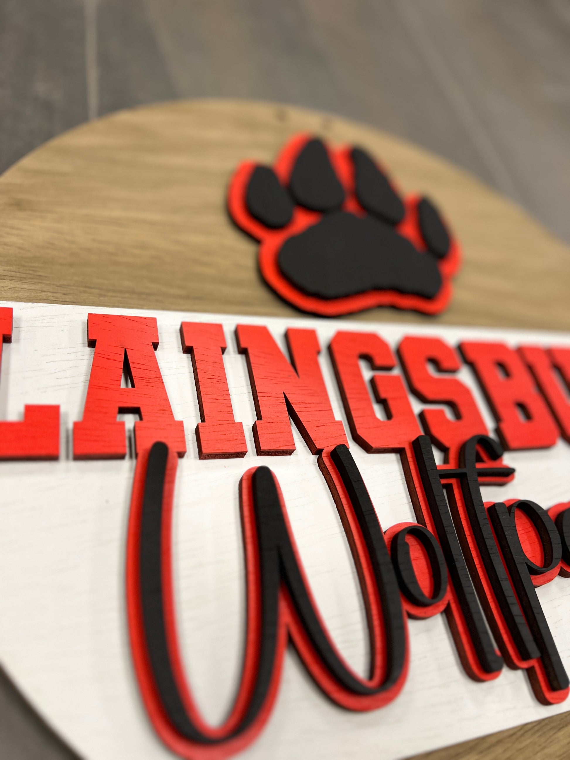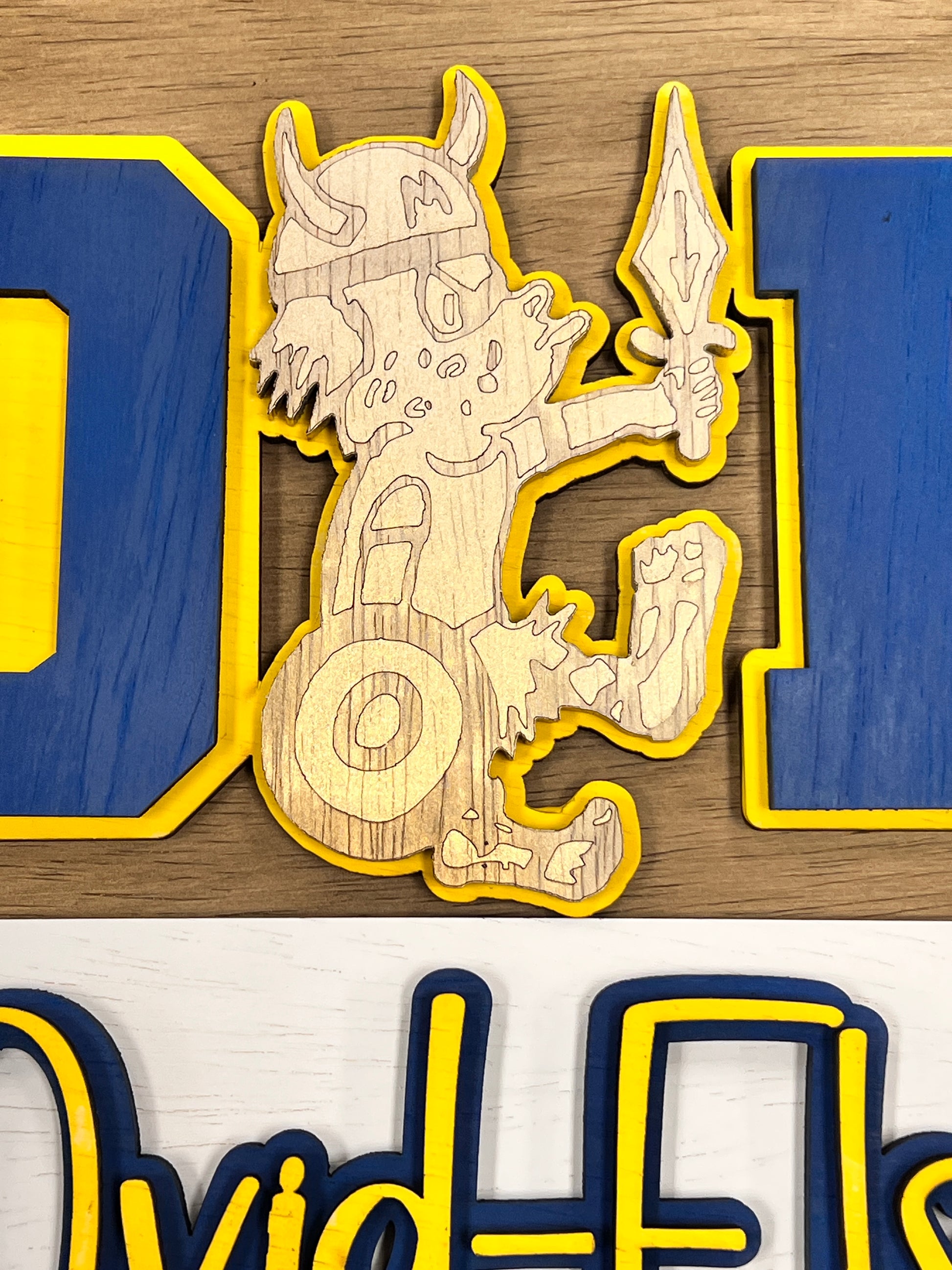 There are two layers--The letters and the graphics are cut out of 1/4" wood on the laser.