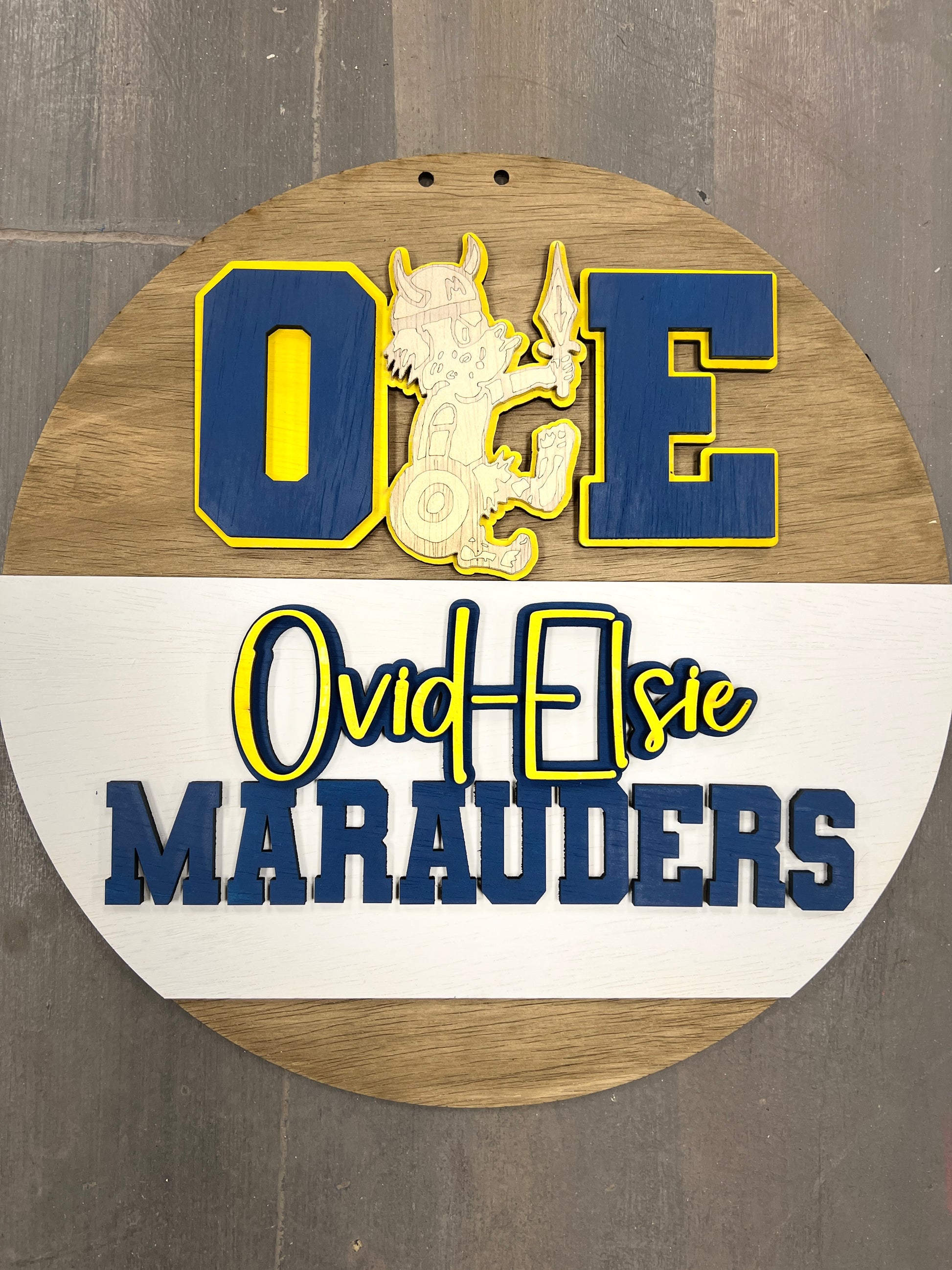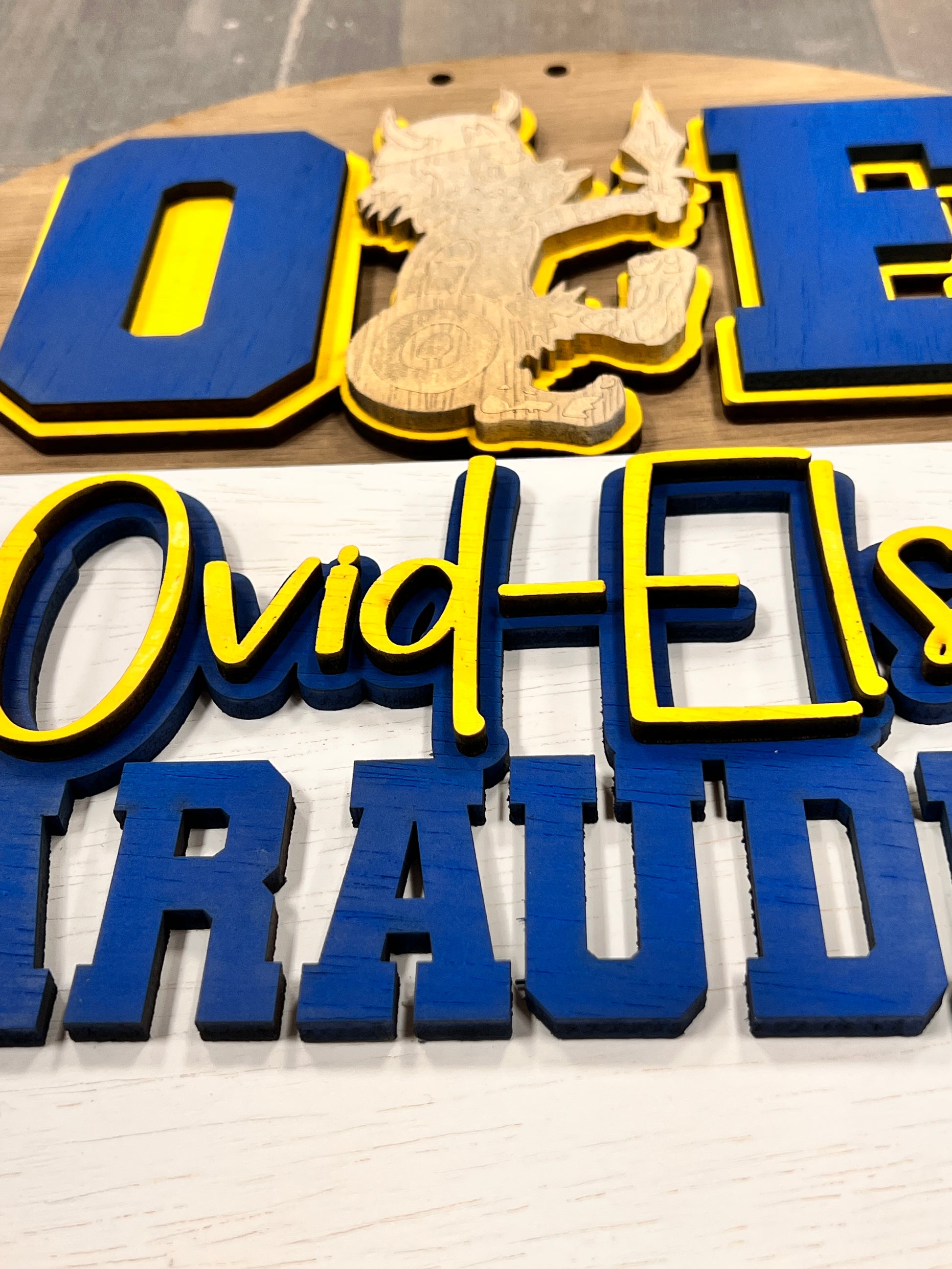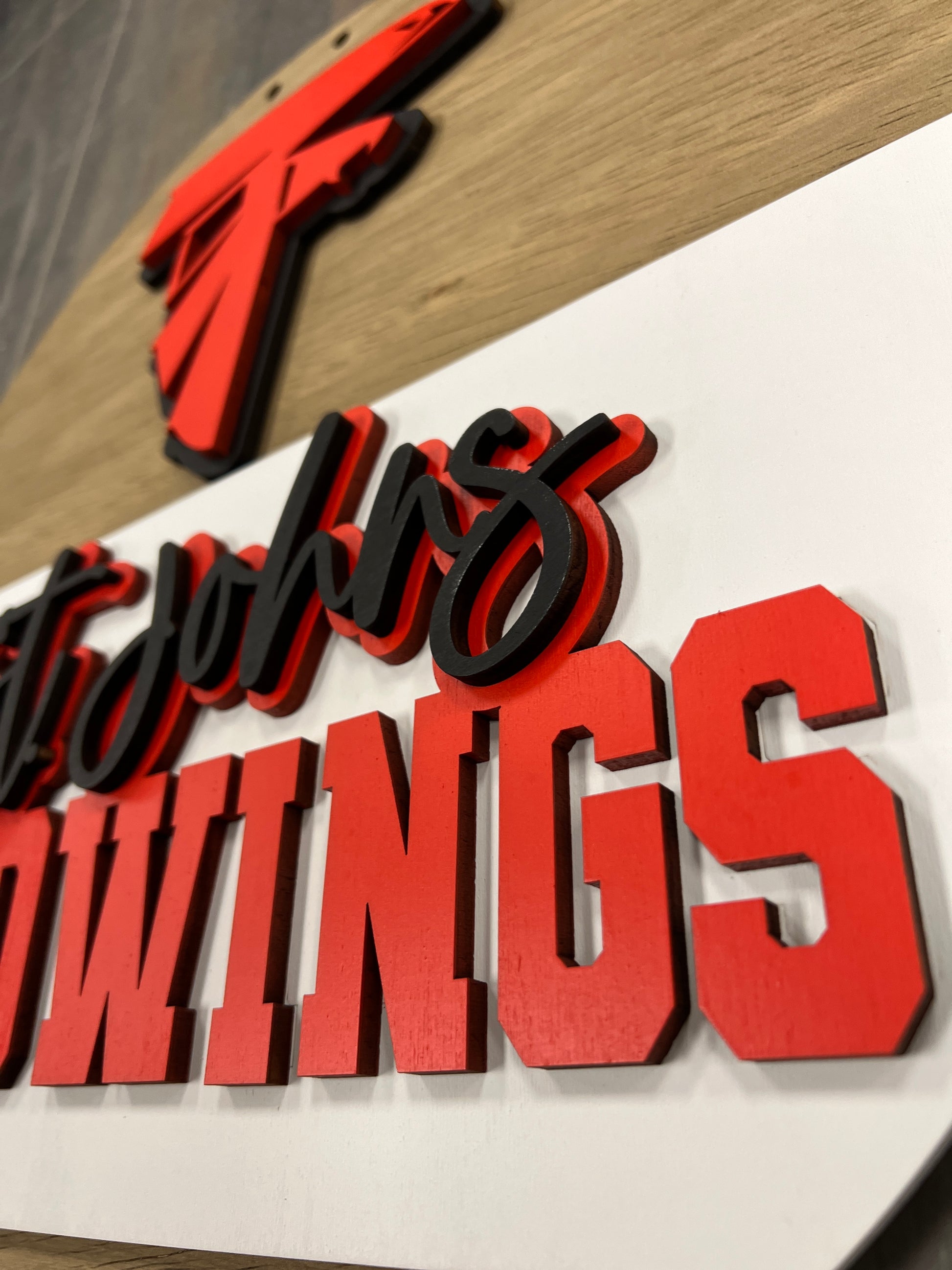 There are two layers--The letters and the graphics are cut out of 1/4" wood on the laser.