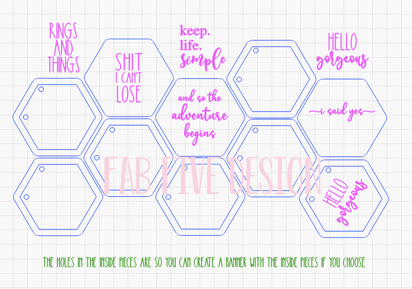 This file contains the pieces for three little dishes. It comes with the sayings shown, but you an easily import it into your favorite design program and change out the words.