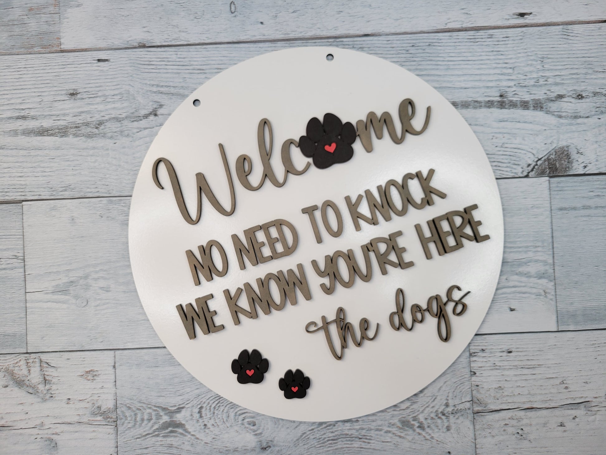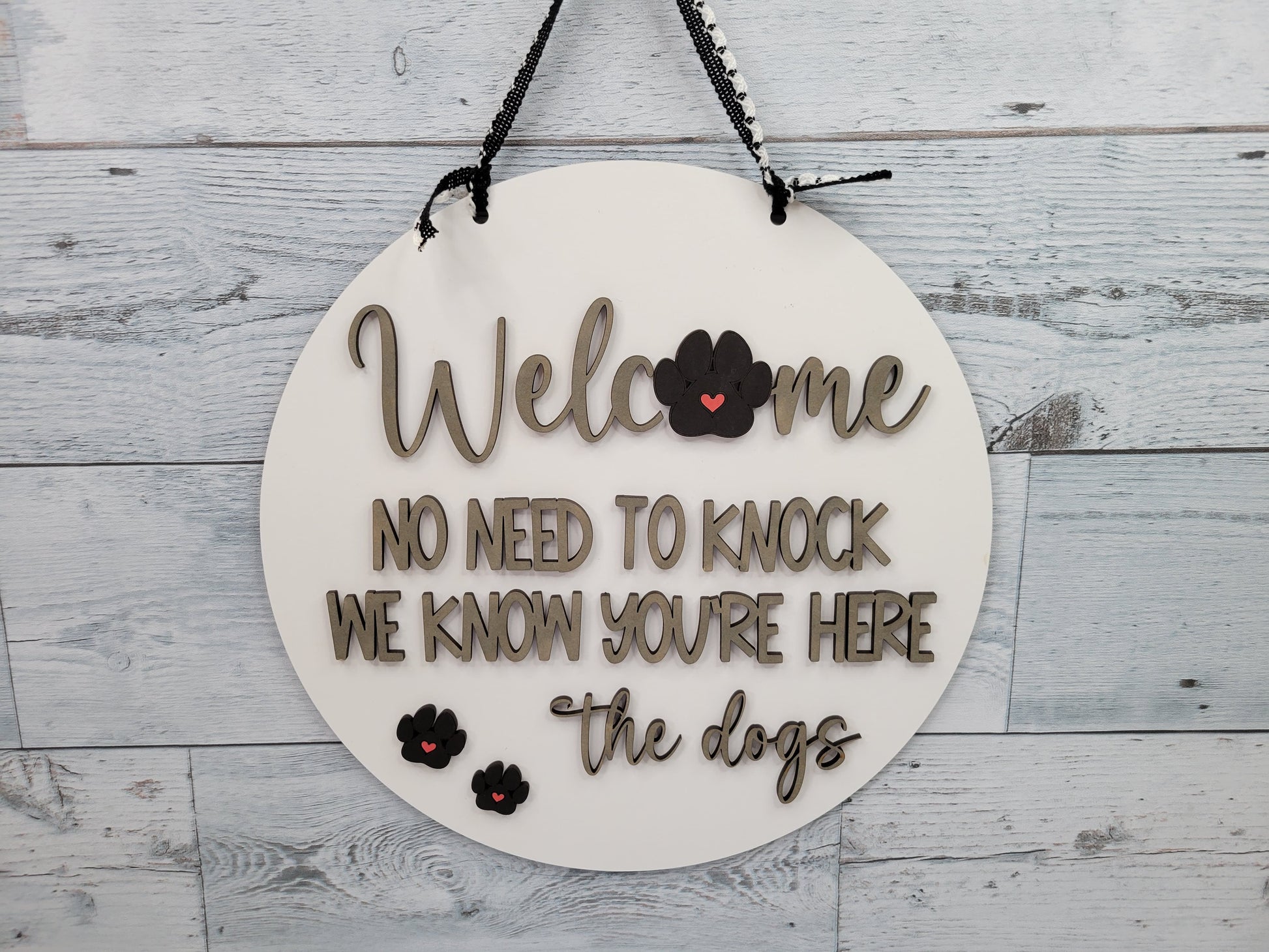 Welcome No need to knock. We know you're here. The Dogs. Door Hanger