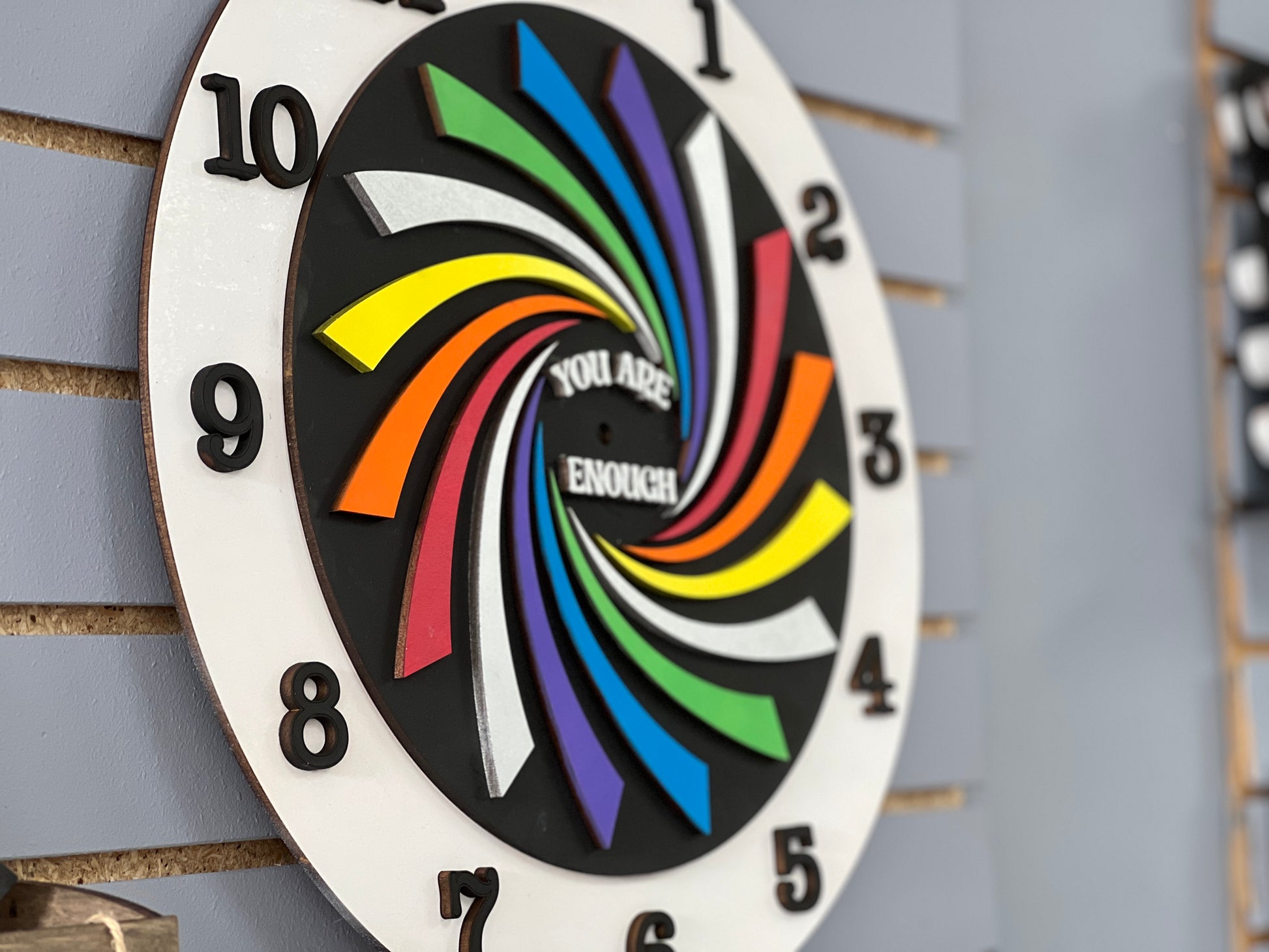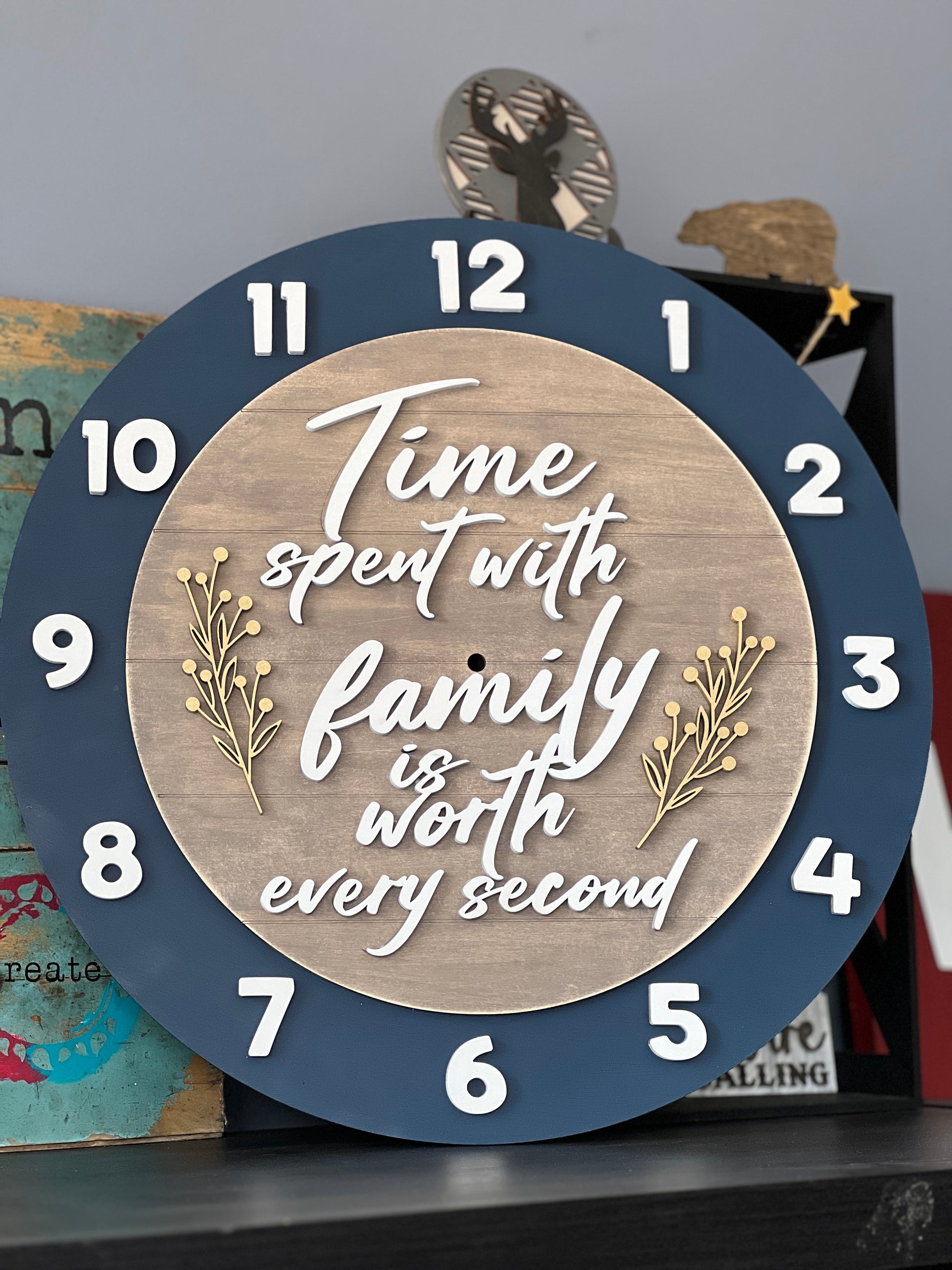These beautiful clocks are made from 1/4" maple. They are layered for easy painting and the placement of more complex pieces is scored to make it easy to assemble! You can make these 16" clocks at our DIY pARTies. All you need to do is choose your design and we will have it ready for you!